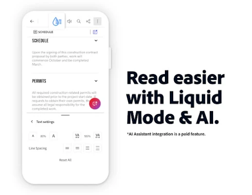 Pe lângă inovațiile premium, Acrobat Reader continuă să ofere o suită robustă de instrumente esențiale, disponibile gratuit. Utilizați funcția de semnare și completare pentru a gestiona formularele fără efort. Bucurați-vă de o experiență de lectură superioară cu modul Lichid, care optimizează afișarea conținutului pentru orice ecran, permițându-vă să navigați, să căutați și să ajustați dimensiunea textului. Adăugați notițe, evidențieri și comentarii cu ușurință pentru a colabora eficient. Integrați-vă conturile de stocare online precum Google Drive, Dropbox sau Microsoft OneDrive pentru a accesa și gestiona fișierele cu o fluiditate remarcabilă, sau importați documente scanate direct din Adobe Scan. Acrobat Reader este partenerul dumneavoastră indispensabil pentru orice provocare legată de PDF-uri, de la cele mai simple la cele mai complexe.