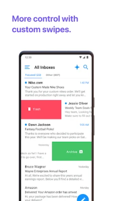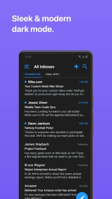 Indiferent dacă gestionezi un singur cont de e-mail sau zeci, Edison Mail simplifică totul prin experiența sa unificată de inbox. Nu mai este nevoie să navighezi între aplicații sau să-ți fragmentezi atenția; toate mesajele tale, de la Outlook, Yahoo, Hotmail, iCloud, Office/Outlook 365, Exchange, AOL, Gmail și conturi IMAP, sunt consolidate într-o singură vizualizare clară și intuitivă, chiar pe dispozitivul tău Android. Pe lângă această centralizare, Edison Mail se mândrește cu o capacitate excepțională de a recupera mesajele mult mai rapid decât alternativele, facilitând totodată căutarea rapidă a informațiilor vitale, precum abonamente, planuri de călătorie, facturi sau detalii de livrare.