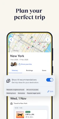 Planificarea alături de prieteni și familie devine o plăcere cu funcțiile colaborative inteligente. Organizați fără efort detaliile itinerariului, comparați opțiuni de cazare și activități și invitați-i pe cei dragi să participe activ, votând și lăsând comentarii la variantele preferate. Odată ce itinerariul este stabilit, aplicația Expedia.co.uk centralizează toate rezervările, oferindu-vă o vizualizare clară și gestionare facilă. De la alerte în timp real pentru modificări de zbor sau ore de check-out, la partajarea simplă a itinerariilor, aveți control total asupra fiecărui aspect al călătoriei dumneavoastră.