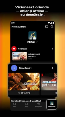 Sistemul inteligent de recomandări Netflix se adaptează gusturilor dumneavoastră, rafinând sugestiile de seriale și filme cu fiecare titlu vizionat, asigurându-vă că descoperiți mereu ceva nou și relevant. Familiile beneficiază de o experiență de vizionare adaptată, cu profiluri dedicate copiilor și o selecție vastă de titluri sigure și distractive, concepute special pentru toate vârstele. Rămâneți la curent cu trailere captivante și primiți notificări personalizate despre lansări importante sau episoade noi ale serialelor preferate, astfel încât să nu ratați niciun moment esențial.